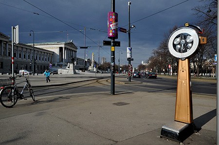 they are everywhere in vienna, looking like sculptures left by aliens: public scales. andy urban photographed them all in their natural environment – from the city centre to its periphery – in order to preserve a probably soon extinct "city furniture" for future generations. rosa pock takes care of the online texts on the scales.