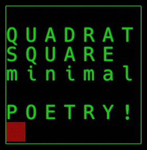 a square, measuring 7 x 7 characters, provides space for recording and replaying poems, rhythmical sound texts, visual speech tunes and micro dramas. within 7 x 7 seconds almost anything is possible.