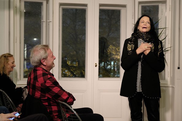 on 12 october, a poetry performance at sfd by anne waldman (usa). performance and talk, anne waldman and bernhard widder in the exhibition "founding fever" (gründungsfieber)