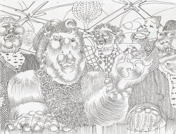 absichtslos, locker und improvisiert wirkt vieles in weidingers zeichnungen. durch die lockerheit im umgang der zeichnerischen mittel vermag man weidinger beim beobachten und denken selbst zu bespitzeln. improvisation oder ausgeklügelte komposition? konkrete zuschreibungen erübrigen sich im werk von weidinger, groteskes aber findet man zuhauf.