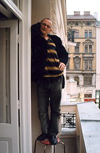 gert jonke 1999 am balkon der künstlerwohnung der sfd