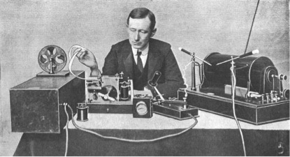 “der italienische physiker guglielmo marconi (1874–1937) behauptete, dass jede gesprochene aussage, die in der menschheitsgeschichte körperlich entäußert wurde, im ä t h e r plastisch stumm vorliegt. d. h. die entscheidende frage ist, wie und wodurch können wir sie hörbar machen? marconi schlug vor, man müsse nur die entsprechenden maschinen bauen, um die s t u m m e  a u s s a g e in eine aktuelle vitale und hörbare klangebene zu transformieren.