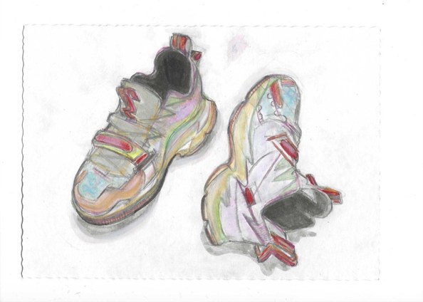 (c) teresa präauer: die schuhe von aisha. zeichnung und malerei auf papier, 10,5 x 14,8 (exklusiv für die sfd)