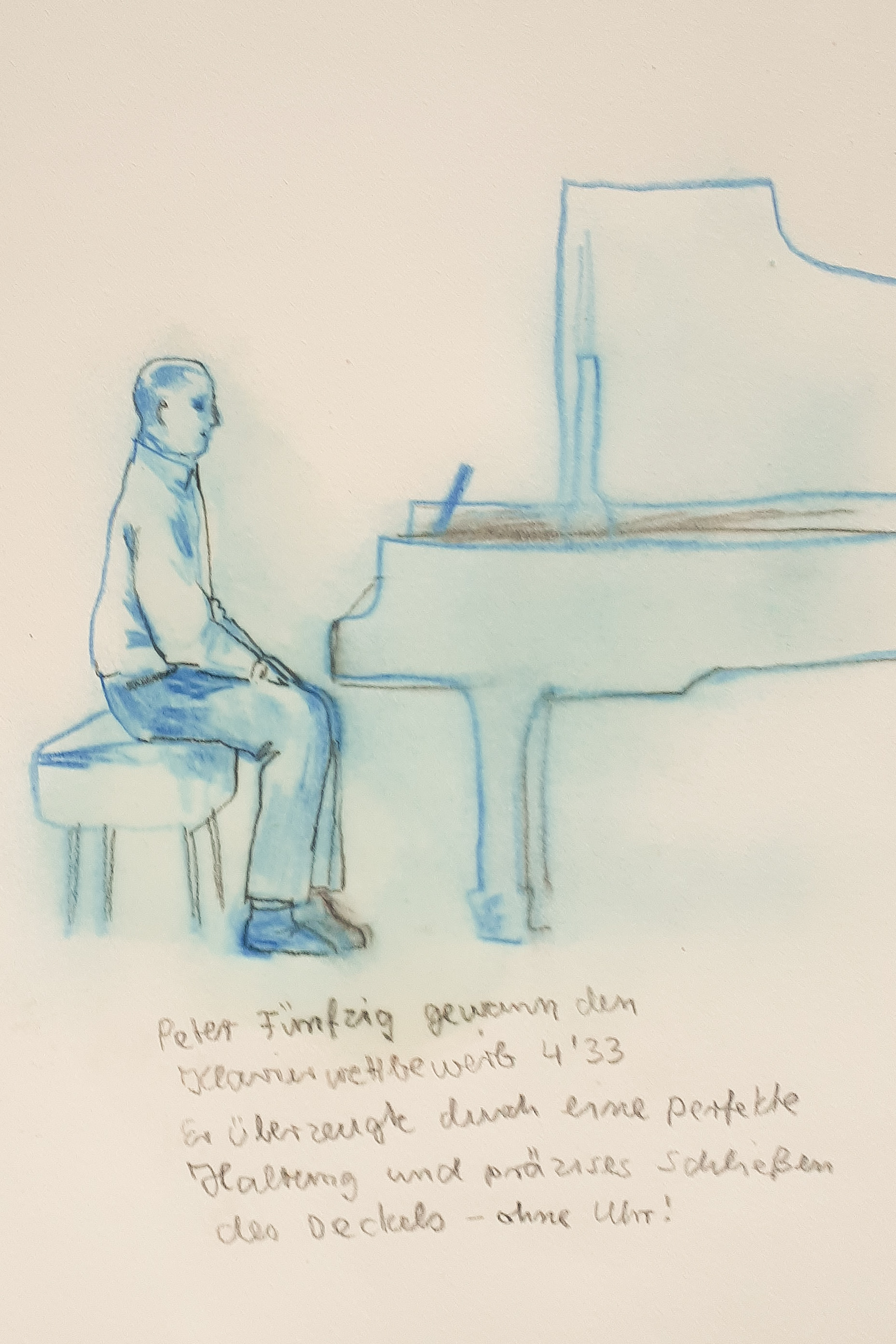 Ist Peter Fünfzig eine Referenz, ein bestimmter Name oder sein Alter? Finde die Zeichnung schön und die Idee ganz gut. Fände es eigentlich stimmiger ohne den Zusatz "ohne Uhr".